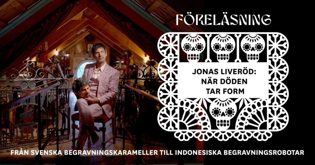 Från svenska begravningskarameller till indonesiska begravningsrobotar. Konstnären Jonas Liveröd belyser viktiga föremål för ritualer och seder runt döden. Såväl tårflaskor som granpilar och pappersbilar har sin plats i en högst levande och mänsklig relation till de döda. I samarbete med Sensus och med stöd från Västra Götalandsregionen